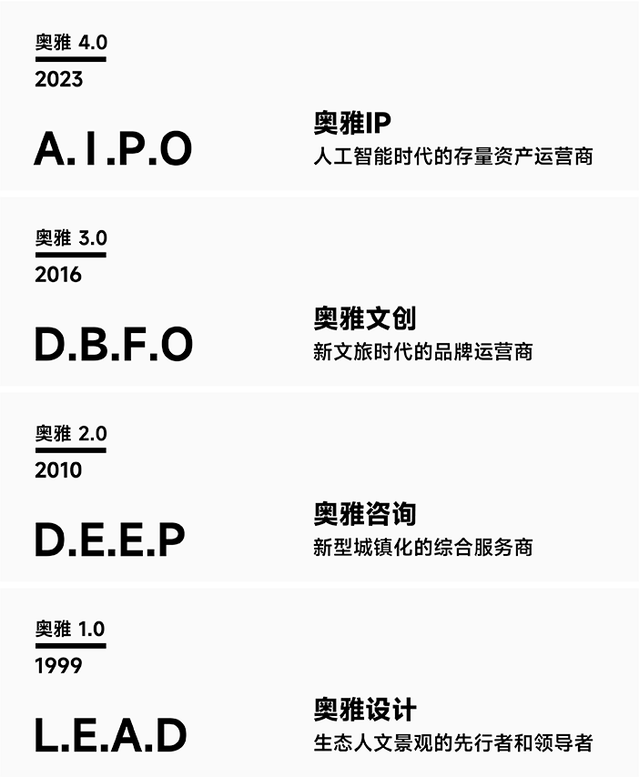 經(jīng)過多年的戰(zhàn)略布局與發(fā)展,在李方悅女士的推動下,奧雅股份從一家設(shè)計(jì)企業(yè)成功轉(zhuǎn)型成為新銳的輕資產(chǎn)文旅開發(fā)運(yùn)營企業(yè)。奧雅以“創(chuàng)造更美好的人居環(huán)境”“讓空間賦予生命”為使命,以雙輪驅(qū)動+雙引擎為發(fā)展格局,即創(chuàng)意設(shè)計(jì)+親子文旅雙輪驅(qū)動、AIGC+IP雙引擎;經(jīng)營業(yè)務(wù)范圍涵蓋創(chuàng)意設(shè)計(jì)、親子文旅、數(shù)字科技等領(lǐng)域,為城市更新、鄉(xiāng)村振興、文化古城等不同場景提供全程化咨詢與綜合運(yùn)營服務(wù)。在實(shí)現(xiàn)企業(yè)價(jià)值和理想的同時(shí),解決當(dāng)代中國的實(shí)際問題與需求,創(chuàng)造具有地域特色、人性化和充滿活力的新舊城市空間和綜合文化旅游項(xiàng)目。